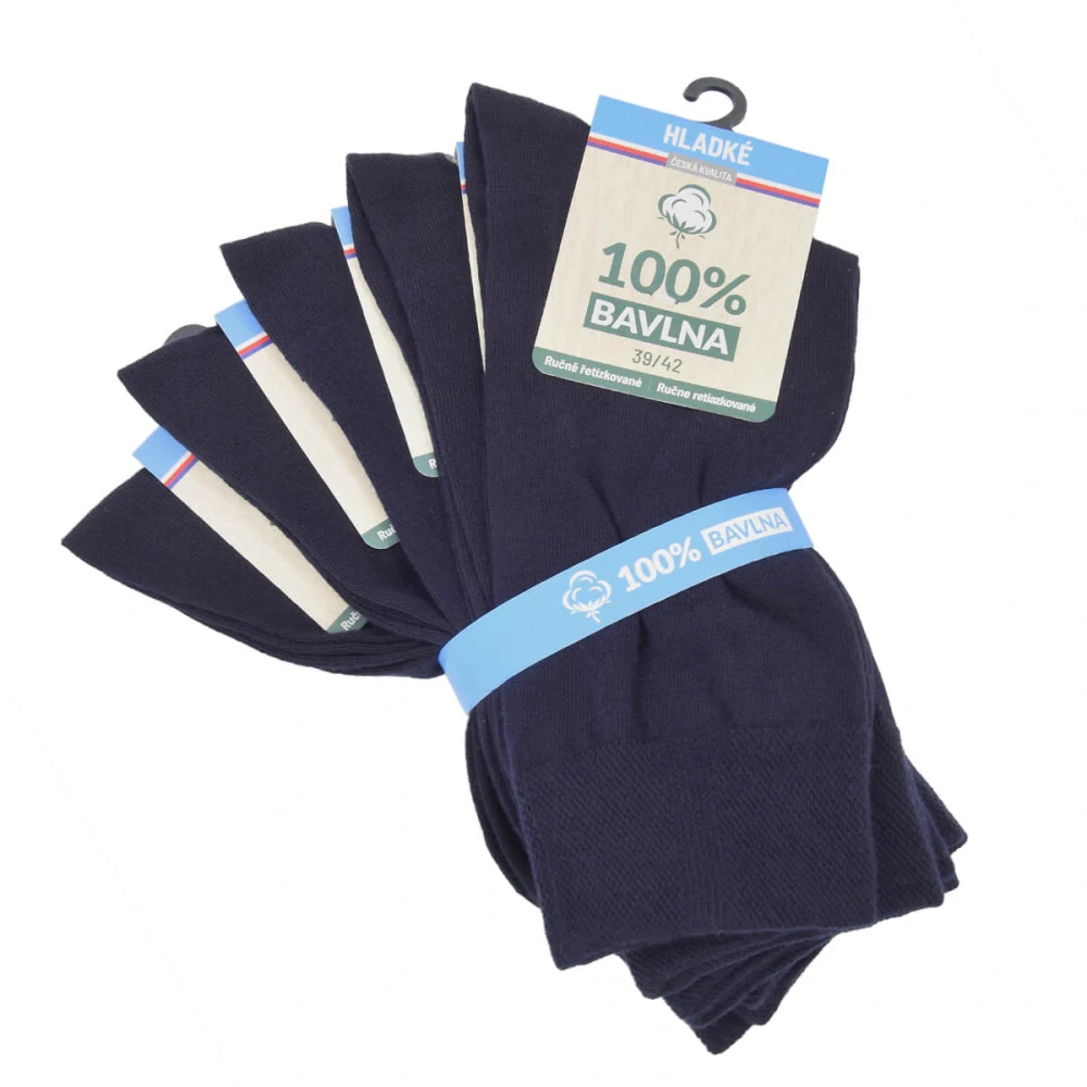 Klasické pánské a dámské hladké čistě bavlněné elastické ponožky z česané bavlny. Řetízkovaná špice a pohodlný lem jsou zárukou komfortního nošení po celý den.