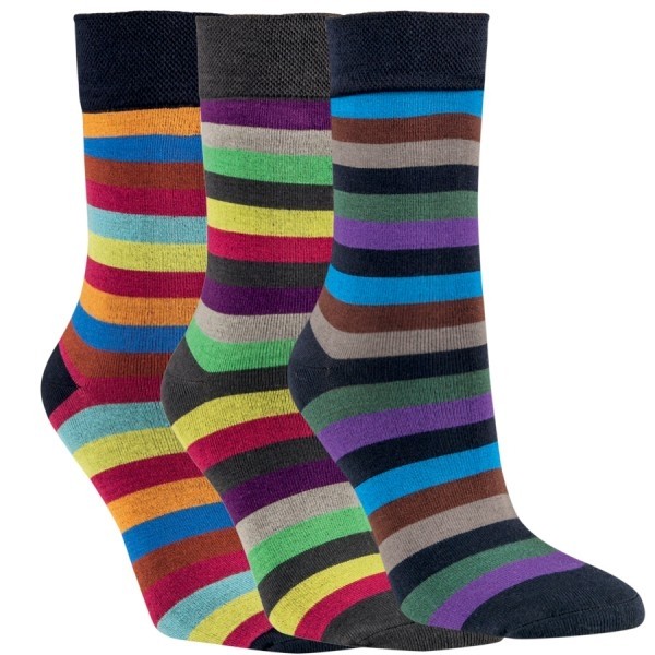 Vysoce kvalitní barevné BAMBUSOVÉ pohodlné elastické ponožky RIESE STRUEMPF s volným nesvíravým zdravotním lemem bez gumiček s celoplošným pruhováním v dokonale sladěných barvách.