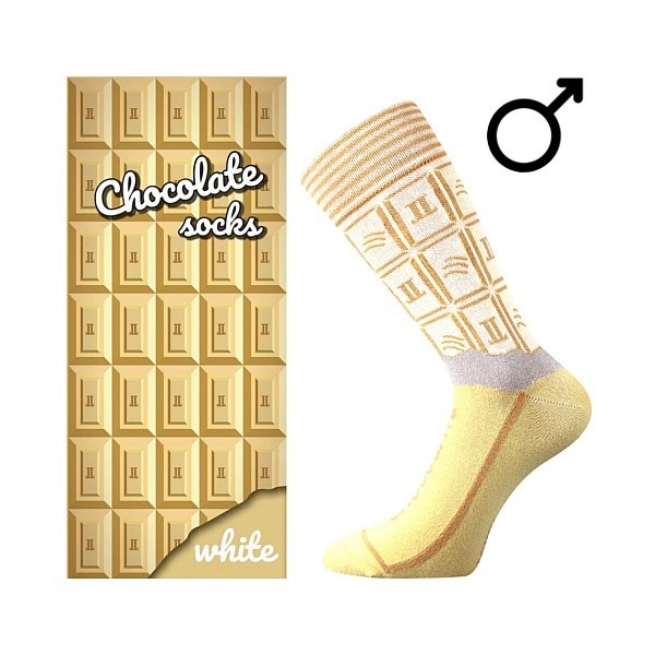 Dámské „trendy“ ponožky Lonka® CHOCOLATE jsou přímo k nakousnutí. Ponožky v designu oblíbené pochoutky balené v originální krabičce. Originální ponožky z příjemné bavlny jsou příjemné na omak. Pro největší pohodlí je špička ponožky uzavřena náročnějším řetízkováním, proto je spoj dokonale hladký a nehrozí, že ponožka bude tlačit. Slabé ponožky v klasické výšce budete chtít hned sníst! Zabalené jsou v dárkovém balení, k nerozeznání od pravé tabulky čokolády. Nelze jim odolat a navíc jsou bez kalorií! Na výběr 3 varianty, tak jakou si vyberete?