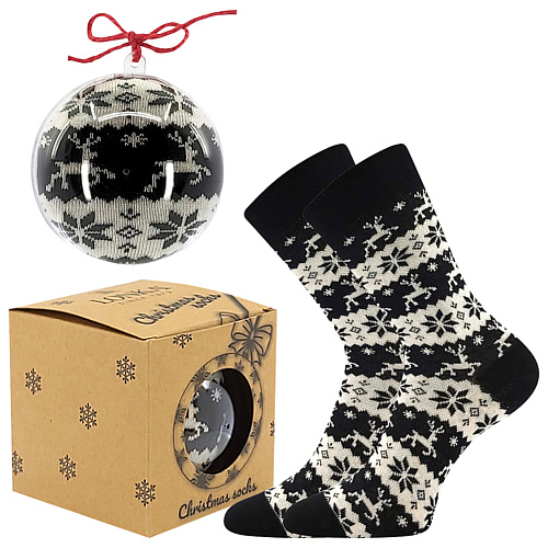 Klasický norský design naladí tu správnou zimní atmosféru. Vtipné ponožky jsme zabalili do průhledné koule a dárkové krabičky, můžete je tedy pověsit rovnou na stromeček jako ozdobu, nebo je darovat jen tak. Díky elegantní krabičce je nemusíte ani složitě balit. Díky Naše ponožky dokáží potěšit i pobavit zároveň. Bavlněné ponožky mají jemný a nestahující pique lem a příjemně se nosí.