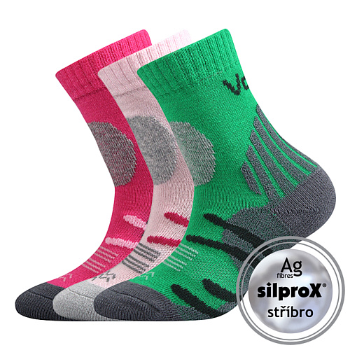 Dětské outdoorové ponožky VoXX® HORALIK jsou funkční ponožky pro kluky a holky. Bavlněné ponožky v klasické výšce doplňuje materiál silprox® s ionty stříbra. Bavlněné ponožky s přídavkem polypropylenu silproX® s ionty stříbra, které působí antibakteriálně a nedochází tak k tvorbě zápachu. Tyto ionty zabraňují vzniku zápachu, ochrání dětské nožky při každodenním nošení. Prodyšné ponožky s polstrovaným froté chodidlem vydrží i zátěž při běhání nebo jiném sportování. Ponožky v teplotní třídě B jsou vhodné do rozmezí teplot od -5°C do +20°C a na výběr je balení po 3 párech v chlapeckých barvách.