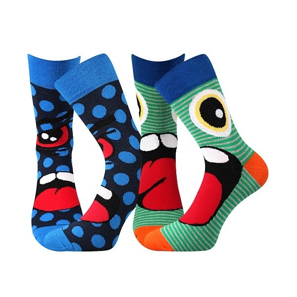 Originální tenké ponožky Boma® KSICHTIK jsou legrační ponožky s obrázky příšerek pro dobrou náladu! Užívejte si dne v bavlněných ponožkách ve strašidelných designech. Slabé ponožky jsou z kvalitní bavlny pro dokonalé pohodlí pro vaše nohy. Hravé barvy vyčarují úsměv na tváři i po celodenním nošení. Dodáváme v mixu 2 párů v barvách pro kluky.