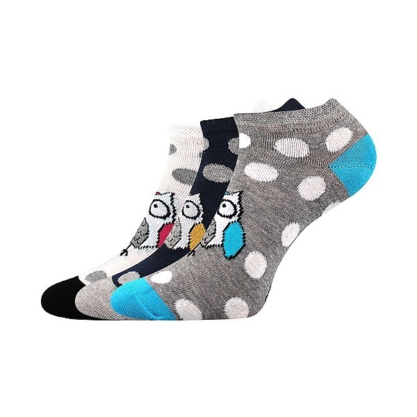 Dámské nízké ponožky Boma® PIKI 62 jsou slabé ponožky z přírodní bavlny doplněné o pružný elastan. Jsou příjemné na nošení a výborně sedí na noze. Výhodné balení letních ponožek s veselými puntíky doplněné o obrázek roztomilé sovičky obsahuje 3 páry.