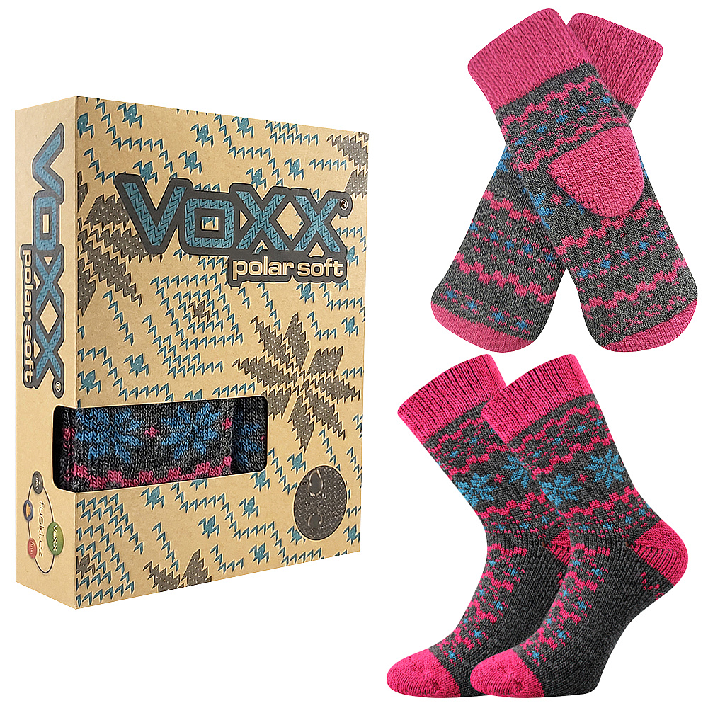 Hřejivá dámská sada silných zimních ponožek VoXX® a pletených palčáků TRONDELAG SET je to pravé na zimní aktivity. K zimním ponožkám máme navíc i palčáky ve stejném norském designu. Vaše nohy i ruce budou v teplu díky silnému froté, doplněného navíc o polstrované zóny proti otlakům a puchýřům.V thermo pletených ponožkách VoXX® se budete se cítit jako v bavlnce, díky jejich silnému froté doplněného navíc o polstrované zóny proti otlakům a puchýřům. Jemný svěr lemu nikde nohu nestahuje, vysoká prodyšnost materiálu zajišťuje komfort při nošení. Díky přidaným iontům stříbra jsou ponožky antibakteriální, nevzniká žádný zápach. Robustní ponožky s norským vzorem v mnoha barvách najdete v teplotní třídě C v rozmezí od -20°C do +5°C.