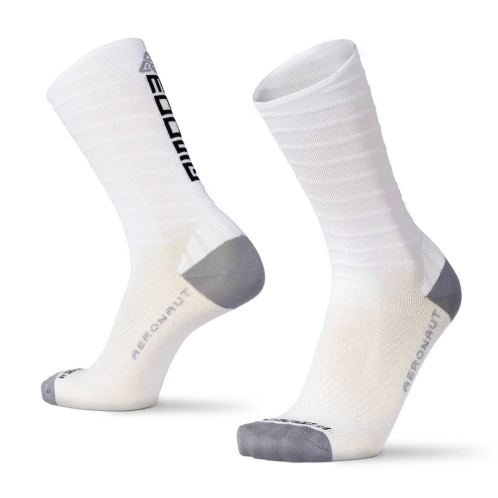 Nekompromisní cyklistická ponožka Compress AERONAUT s aerodynamickými prvky a kompresním provedením pro rychlou jízdu zejména na silnici nebo dráze. Aktuálně nejvyšší model celé cyklo řady kombinuje unikátní a náročná technická řešení s kvalitními materiály. Vyšší kompresní ponožka pevně drží na noze a použitý polyamid spolu s technickým řešením umožňuje plynulejší tok vzduchu kolem nohy. Jemné plyšování nad patou zvyšuje komfort při jízdě, zatímco technická kombinace elastanů a "bavlněného" polyesteru na chodidle přináší zejména snížení kluzkosti ponožky v botě a tím lepší přenos síly přes botu do pedálů. Při použití se může projevit žmolkování materiálu, což je však v tomto případě žádoucí, neboť dochází k dalšímu zafixování ponožky v tretře. Plochý šev pak zajišťuje ochranu pro citlivé prsty a zesílená pata a špice dostatečně dlouhou životnost.