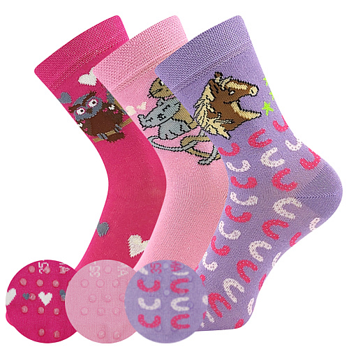 Dětské slabé ponožky Boma® FILIP 05 ABS jsou plné krásných barevných a veselých obrázků. Potěšte vaše děti hravými ponožkami s motivy pro slečny i mladé pány, vybere si každý. Ponožky jsou klasické výšky a mají měkký pružný lem a díky protiskluzovému ABS na chodidle jsou bezpečné. Vhodné nejen na doma na celodenní nošení. Veselé ponožky prodáváme v mixu.