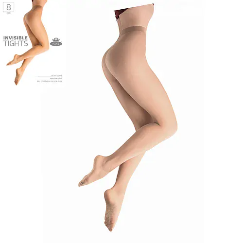 Dámské komfortní punčochové kalhoty LadyB INVISIBLE TIGHTS v síle 8 DEN jsou, jak název napovídá na pokožce "neviditelné". Jemné a průsvitné punčocháče mají podíl pružného elastanu, který se přizpůsobí každé postavě. Špička je neviditelná, bez obav můžete punčocháče nosit i do otevřené obuvi. Neviditelné punčocháče jsou bez zesíleného sedu, zato mají decentní malý bavlněný klín. Komfortní punčocháče jsou jemně parfémované, balené v extra sáčku v obálce.