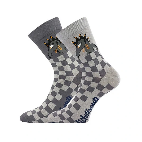 Dětské ponožky Boma® LICHOŽROUTI K jsou klasické bavlněné ponožky lichožroutské bandy, která miluje liché ponožky. Hihlík, Padre, Kudla, Ramses, Rezek a Žiletka si ponožky seskládali podle sebe, takže pokud budete chtít mít stejný pár, pořiďte od každého dvě sady.