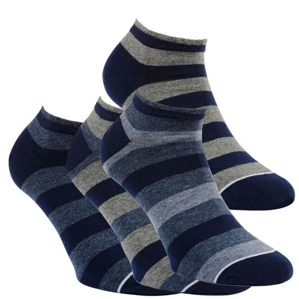 Pánské nízké sneaker ponožky, plochý šev špice, jemně tkané, 75% bavlny, zpevněná pata špička, 4 barevné kombinace, letní, modní proužek