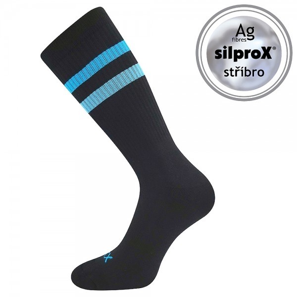 Pánské sportovní ponožky VoXX® RETRAN jsou vysoké ponožky pro tenis a halové sporty. Spojení retro designu a moderní technologie výroby a materiálů přírodní bavlny a antibakteriálního materiálu silproX® s ionty stříbra oceníte i po náročném sportovním výkonu, kdy ponožky ani nohy nebudou zapáchat. Vysoký podíl bavlny je příjemný na nošení. Speciální konstrukce na nártu zabraňuje přetočení v botě, polstrované zóny chrání nohu proti otlakům a puchýřům a volný jemný lem nohy nepříjemně nestahuje ani neškrtí. Antibakteriální ponožky jsou pro každodenní použití, teplotní třída ponožek je A, vhodné do teplot v rozmezí od +10°C do +35°C.