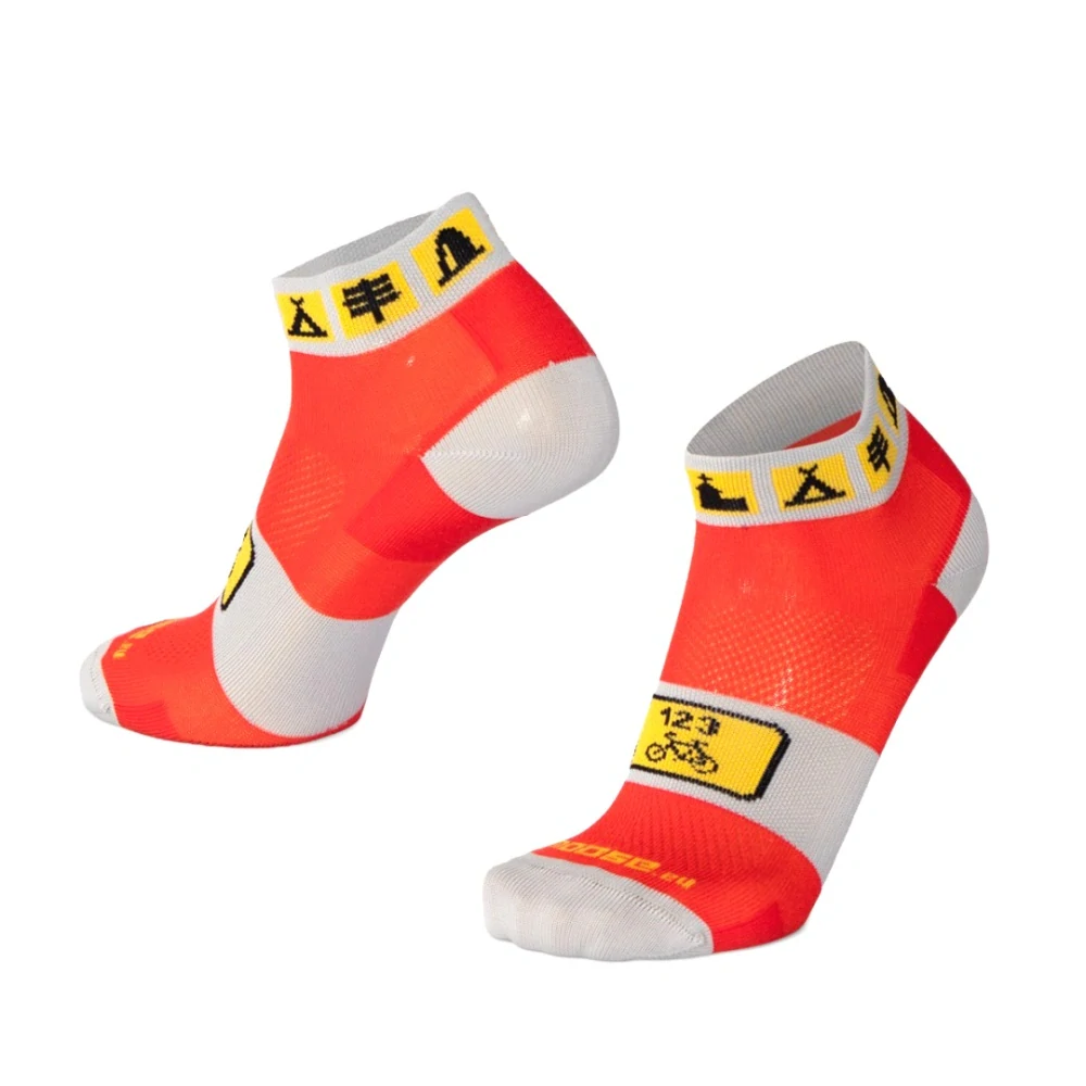 SMILE je základní univerzální řadou ponožek pro nejrůznější druhy sportovních aktivit, které v sobě kombinují příjemné funkční materiály, kvalitní zpracování v naší třebíčské pletárně a různé typy grafických řešení. Zesílená Achilovka, pata špice a část chodidla zajišťují dlouhou životnost. Samozřejmostí je také plochý netlačící šev. Výška SMILE5 je kotníková ponožka pro letní využití a nejrůznější typy aktivit, ale je vhodná i pro celodenní nošení. Cykloturistický design přímo předurčuje tento konkrétní model na kolo a výlety po okolí.