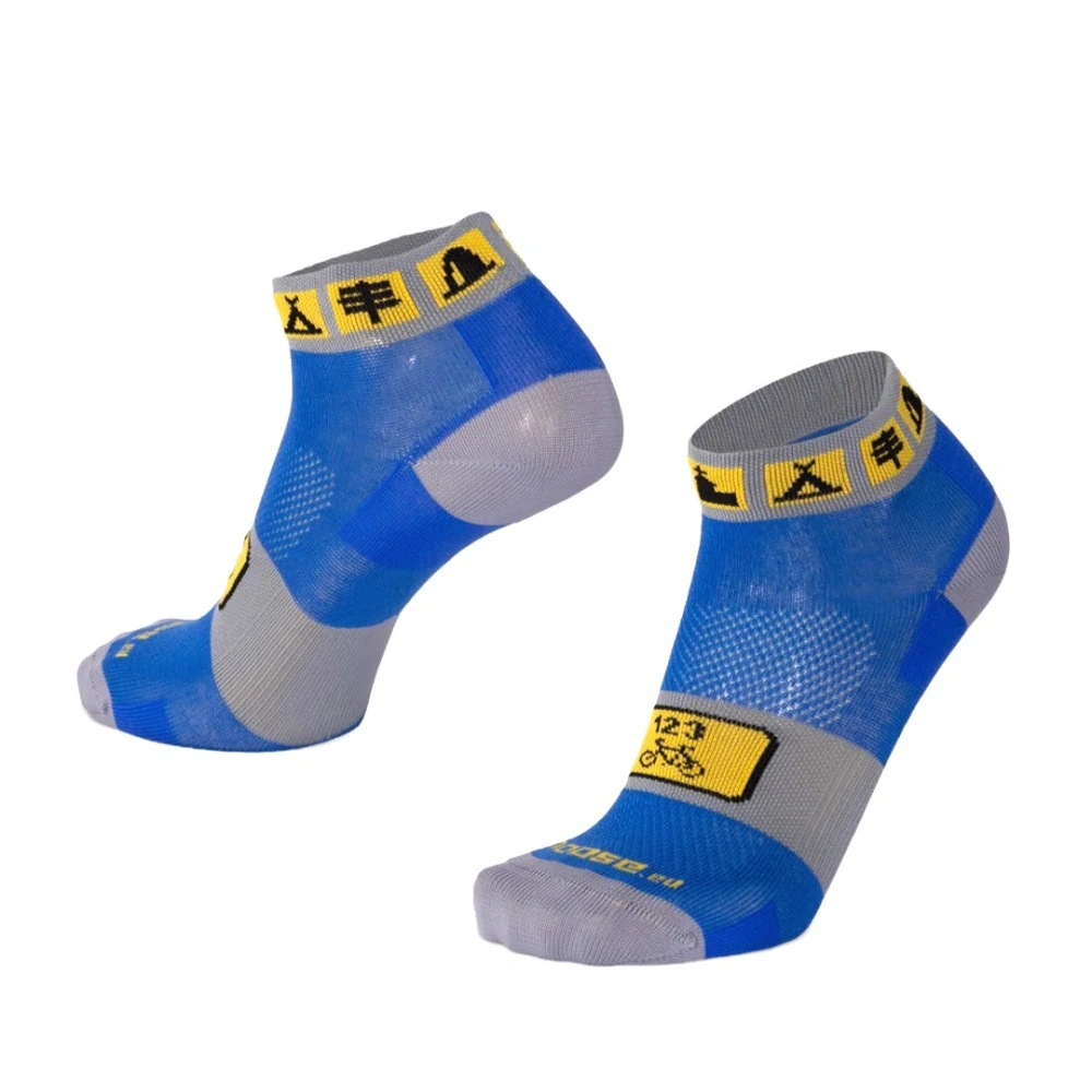 SMILE je základní univerzální řadou ponožek pro nejrůznější druhy sportovních aktivit, které v sobě kombinují příjemné funkční materiály, kvalitní zpracování v naší třebíčské pletárně a různé typy grafických řešení. Zesílená Achilovka, pata špice a část chodidla zajišťují dlouhou životnost. Samozřejmostí je také plochý netlačící šev. Výška SMILE5 je kotníková ponožka pro letní využití a nejrůznější typy aktivit, ale je vhodná i pro celodenní nošení. Cykloturistický design přímo předurčuje tento konkrétní model na kolo a výlety po okolí.