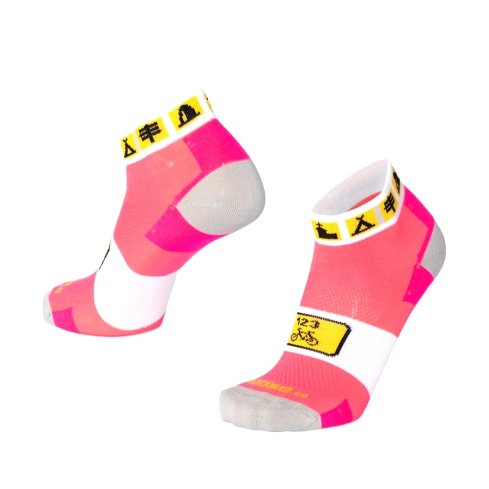 SMILE je základní univerzální řadou ponožek pro nejrůznější druhy sportovních aktivit, které v sobě kombinují příjemné funkční materiály, kvalitní zpracování v naší třebíčské pletárně a různé typy grafických řešení. Zesílená Achilovka, pata špice a část chodidla zajišťují dlouhou životnost. Samozřejmostí je také plochý netlačící šev. Výška SMILE5 je kotníková ponožka pro letní využití a nejrůznější typy aktivit, ale je vhodná i pro celodenní nošení. Cykloturistický design přímo předurčuje tento konkrétní model na kolo a výlety po okolí.