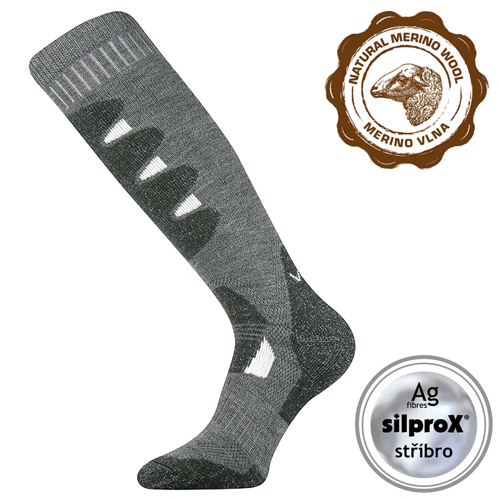 Dámské a pánské termo podkolenky VoXX® STABIL jsou silné podkolenky s maximálním tepelným komfortem i ve velmi chladných a mrazivých dnech. Díky vysokému podílu merino vlny CLIMAYARN jsou extra teplé, zajišťuje svému nositeli maximální tepelný komfort. Silné podkolenky VoXX® jsou unisex a pro sportovní účely jsou vybaveny polstrovanými zónami proti otlakům a puchýřům, vysokou prodyšností a antibakteriální ochranou ionty stříbra zabraňující vzniku zápachu. Nosit je můžete po celý den i v extrémně mrazivém prostředí až do - 35°C, nemusíte se obávat s nimi vyrazit lyžovat na ledovec anebo se vypravit na sněžnice. Podkolenky VoXX® mají teplotní třídu D.