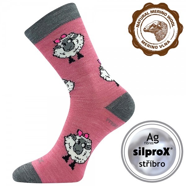 Dětské slabé ponožky VoXX® VLNĚNKA s roztomilými obrázky oveček vtipně odkazují na materiál, ze kterého jsou upletené. Nejjemnější merino vlna je doplněná navíc o ionty stříbra v materiálu silproX®. Díky vyztužené špici a patě jsou opravdu odolné vůči opotřebení. Teplé a zároveň slabé ponožky jsou i tak hřejivé z merino vlny, doplněné o antibakteriální silproX® s ionty stříbra. Jsou přirozeně antibakteriální, omezují tvorbu bakterií a plísní – ty jsou v ponožkách přirozeně zničeny a nedochází pak k tvorbě zápachu. Studené nohy už vaše dítka mít rozhodně nebudou, ponožky mají teplotní třídu B vhodnou do teplot od -5°C do +20°C.