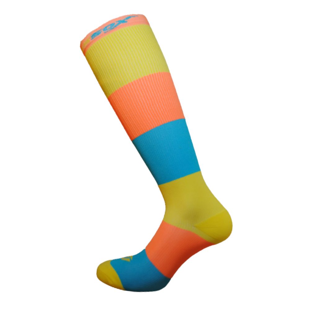 Barevné kompresní podkolenky X-TRIPLE mají trychtýřovitou strukturu pro maximální výkon a velmi kompresní oblast achilovy paty. Podkolenky udrží svalstvo ve správném napětí a pomohou k lepší regeneraci při výkonech. Vysoké množství elastanu zajistí opravdu dostatečnou kompresi.