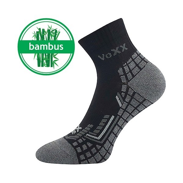 Bambusové ponožky VoXX YILDUN jsou ideální volbou pro sport a volný čas. VoXX ponožky vyrobené z viskózy bambusu disponují rovněž přirozenou antibakteriální ochranou, jsou jemné na omak a příjemné na celodenní nošení. Bamboo ponožky mají zesílenou froté vrstvu v oblasti chodidla a extra vyztužení proti rychlému opotřebování. Elastická zóna na nártu zabraňuje přetočení ponožky v obuvi. Bambusové ponožky jsou kotníkové a tedy velmi multifunkční. Kvalitní bambusové ponožky mají zároveň antialergické vlastnosti a na omak jsou velmi jemné. Teplotní třída ponožek je B, vhodné do teplot v rozmezí od -5°C do +20°C.
