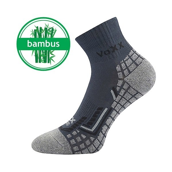 Bambusové ponožky VoXX YILDUN jsou ideální volbou pro sport a volný čas. VoXX ponožky vyrobené z viskózy bambusu disponují rovněž přirozenou antibakteriální ochranou, jsou jemné na omak a příjemné na celodenní nošení. Bamboo ponožky mají zesílenou froté vrstvu v oblasti chodidla a extra vyztužení proti rychlému opotřebování. Elastická zóna na nártu zabraňuje přetočení ponožky v obuvi. Bambusové ponožky jsou kotníkové a tedy velmi multifunkční. Kvalitní bambusové ponožky mají zároveň antialergické vlastnosti a na omak jsou velmi jemné. Teplotní třída ponožek je B, vhodné do teplot v rozmezí od -5°C do +20°C.